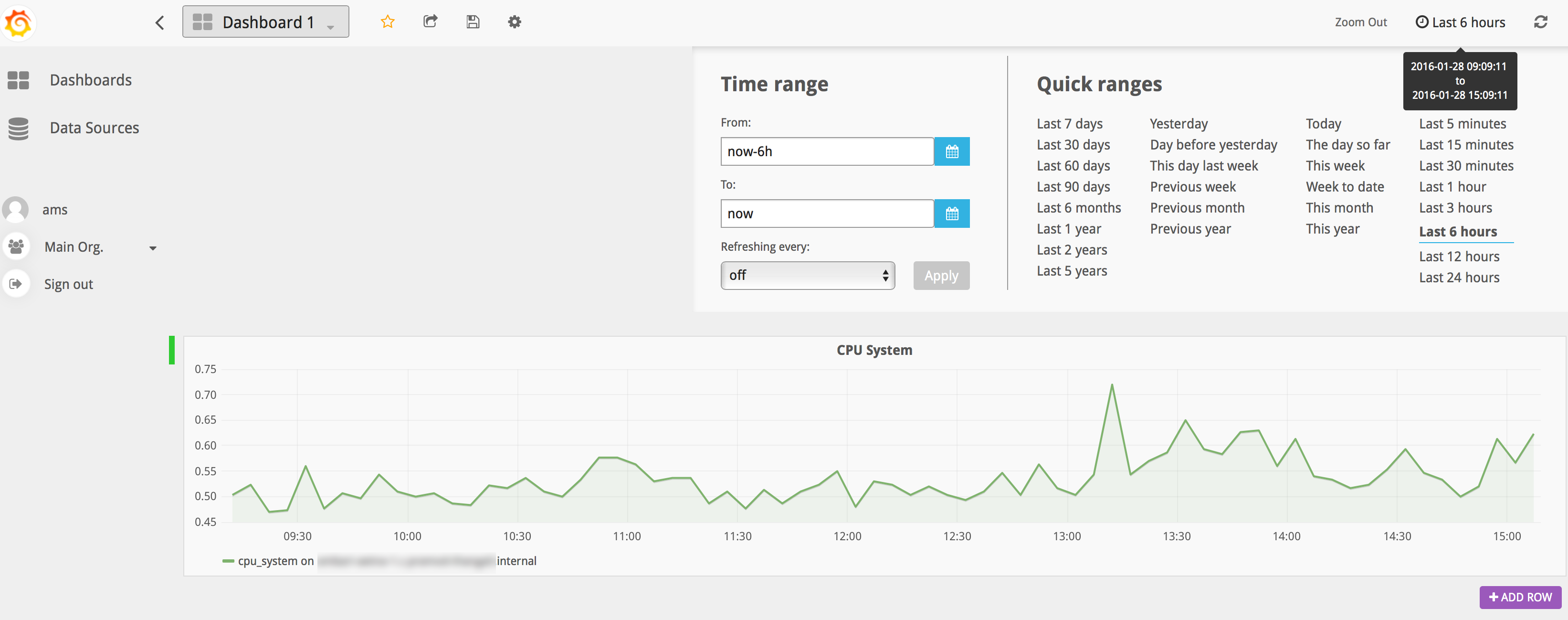 • Use this in case you wish to change the time range for a specific graph without affecting the other graphs in your dashboard