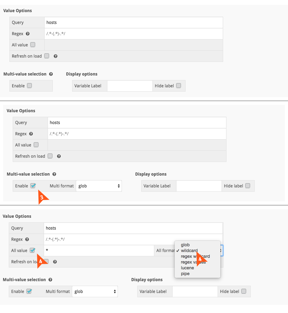 3. To be able to select Multiiple Hosts, set multi-value selection to "enable" and leave multi-format set to "glob".